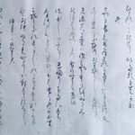 森田祥香書 「庭のべの水づく木立に枝高く青蛙鳴く明け方の月」 伊藤左千夫作