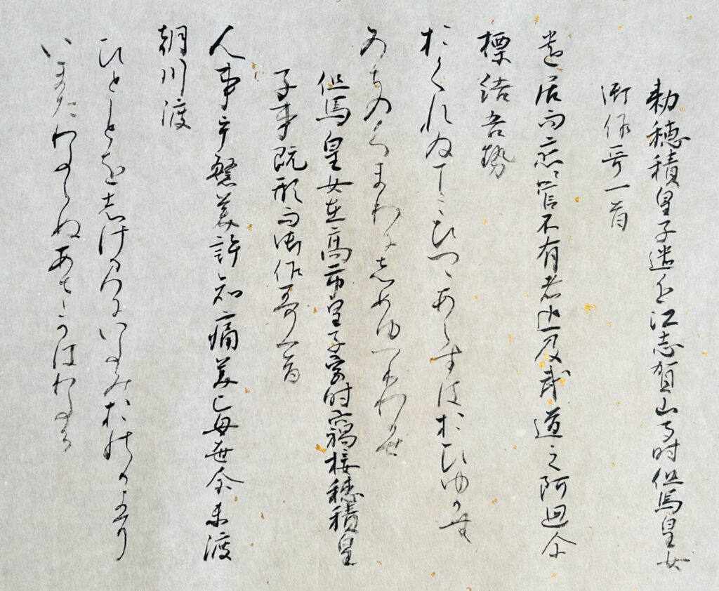 書き下し文は「穂積皇子に勅して近江の滋賀の山寺に遣(つか)はす時但馬皇女の作りましし歌一首」