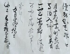 解説:「抑」手偏であるが、書き方が木偏や方偏に近いようである。旁はやや省略が過ぎているのか草書としては読みにくい。
