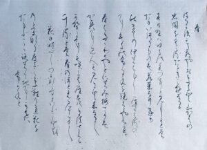 釈文:「春はただ わが宿にのみ 梅咲かば かれにし人も 見にと来なまし」
