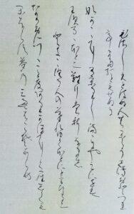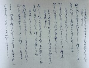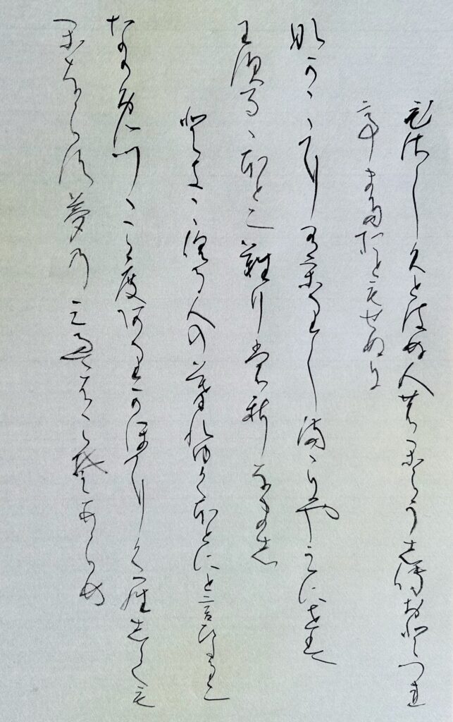 釈文:「ひさしくとはぬ人の、からうじておとづれて、またおともせぬに 『なかなかに うかりしままに やみにせば 忘るるほどに なりもしなまし』」