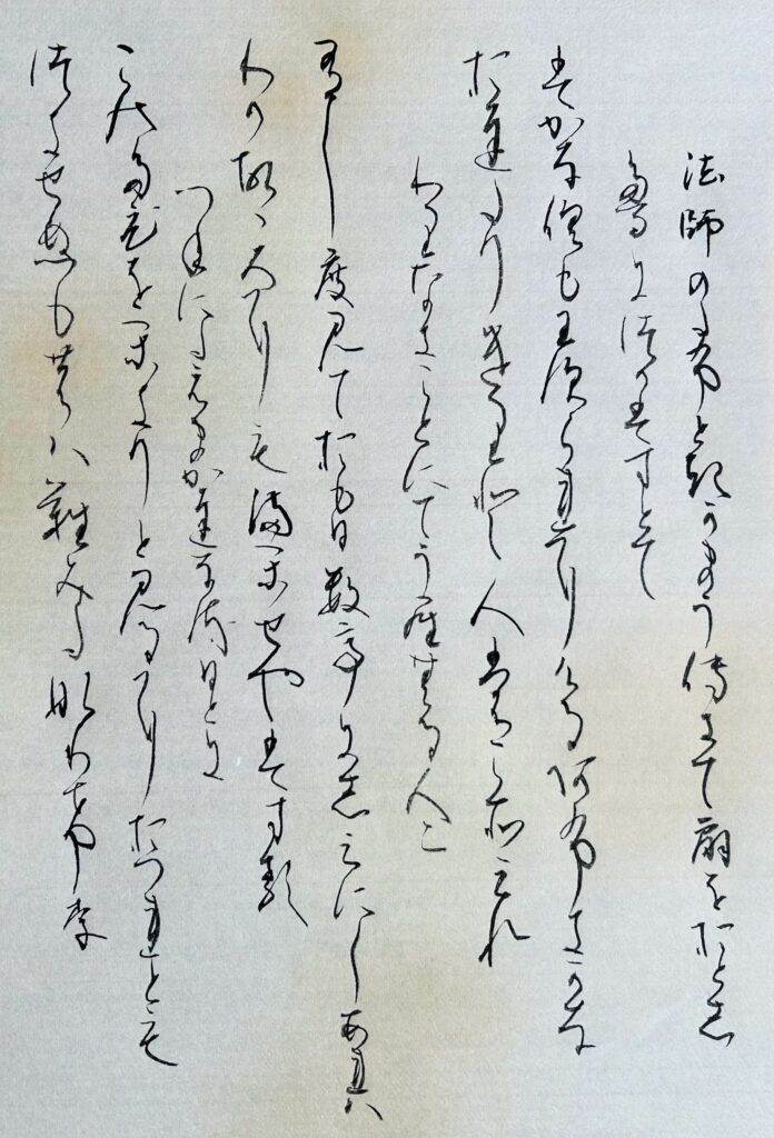 釈文:「法師のたふときがまうできて、扇をおとしたるにつかはすとて『はかなくも 忘られにける あふぎかな おちたりけりと 人もこそみれ』」